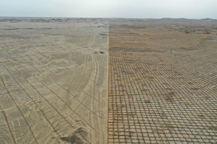 多年来,宁夏创新应用新技术、新模式,持续推进荒漠化综合治理,在全国率先实现荒漠化逆转。2025年,宁夏境内腾格里沙漠防风阻沙带全线贯通、毛乌素沙地流动沙丘全面固定,黄河“几字弯”攻坚战取得标志性成果。